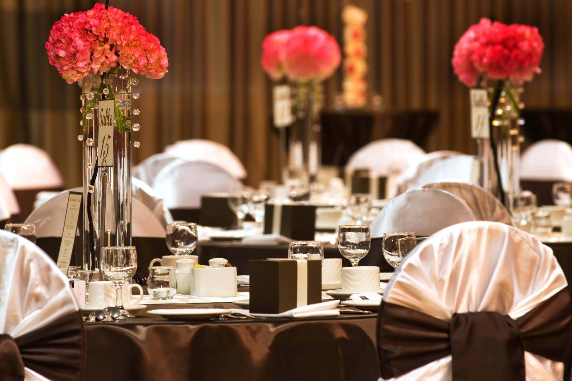 We are able to provide most decor for your event for table settings and more. We do not supply Backdrops, Ceiling Swag, DJ's, Photographers or Videographer.